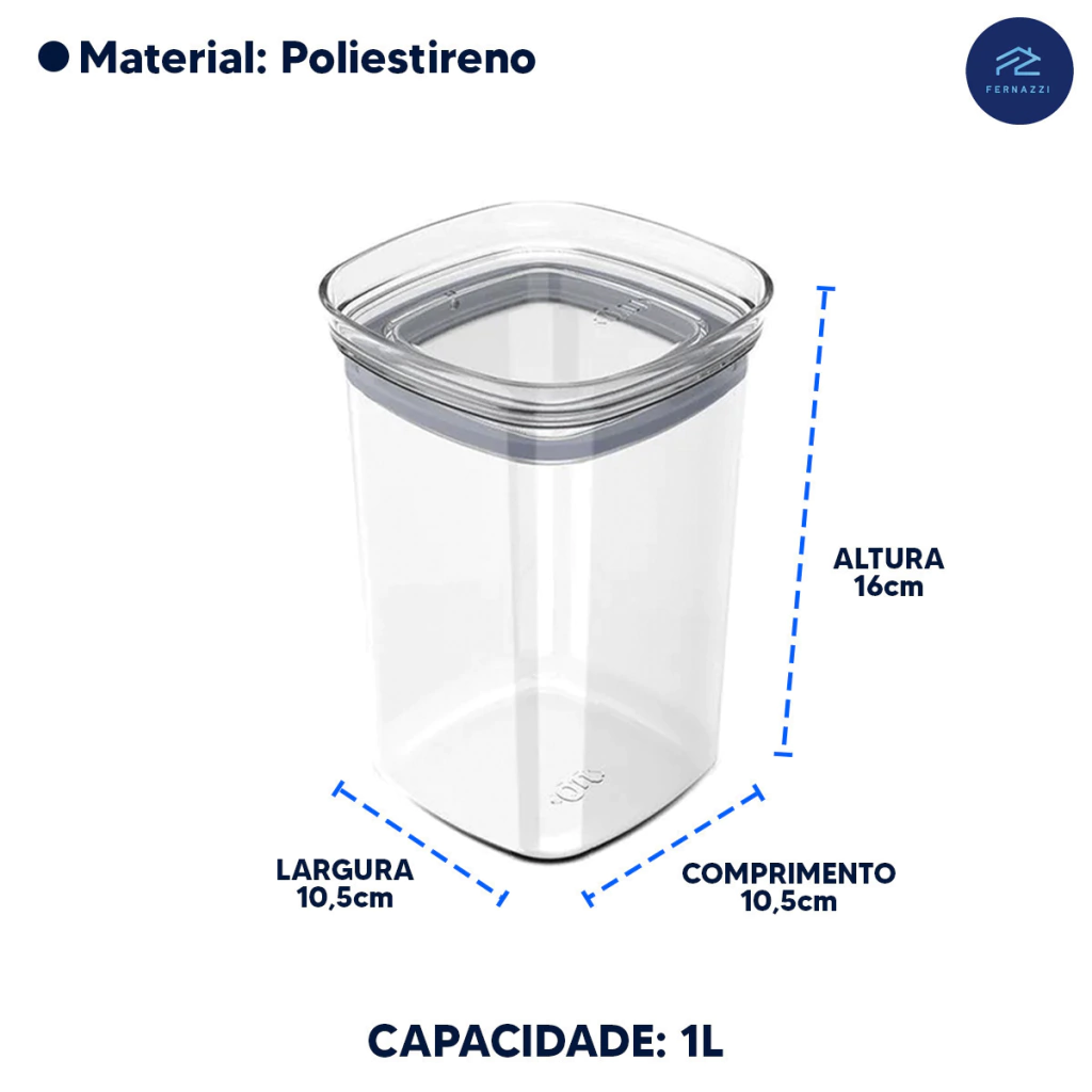 Otimize sua cozinha com o Kit de Potes Herméticos Block, ideal para organizar e conservar alimentos secos. Com capacidade de 1 litro cada, esses potes oferecem praticidade, vedação eficiente e um design moderno que transforma sua rotina culinária.