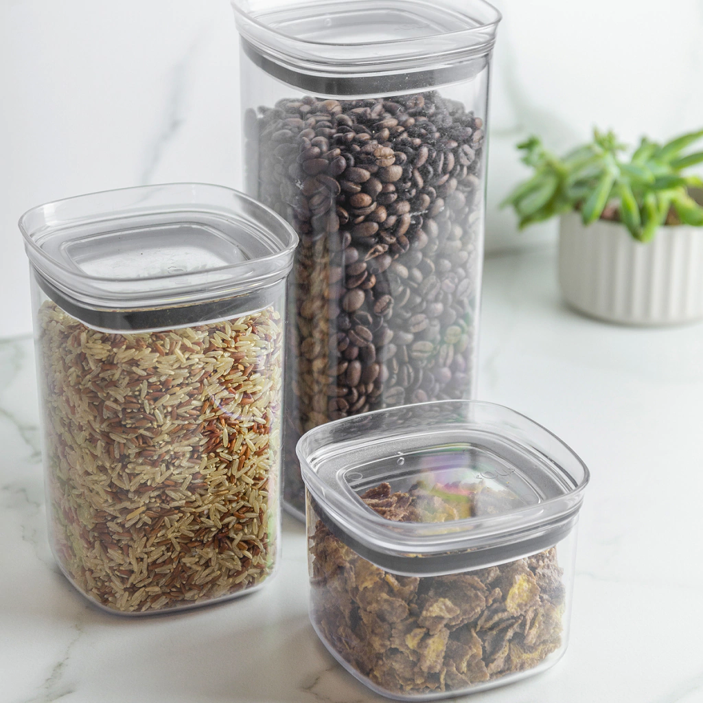 • 6 Potes Herméticos Block de 1L: Perfeitos para armazenar grãos, cereais, farinhas e outros alimentos secos com segurança e praticidade.
