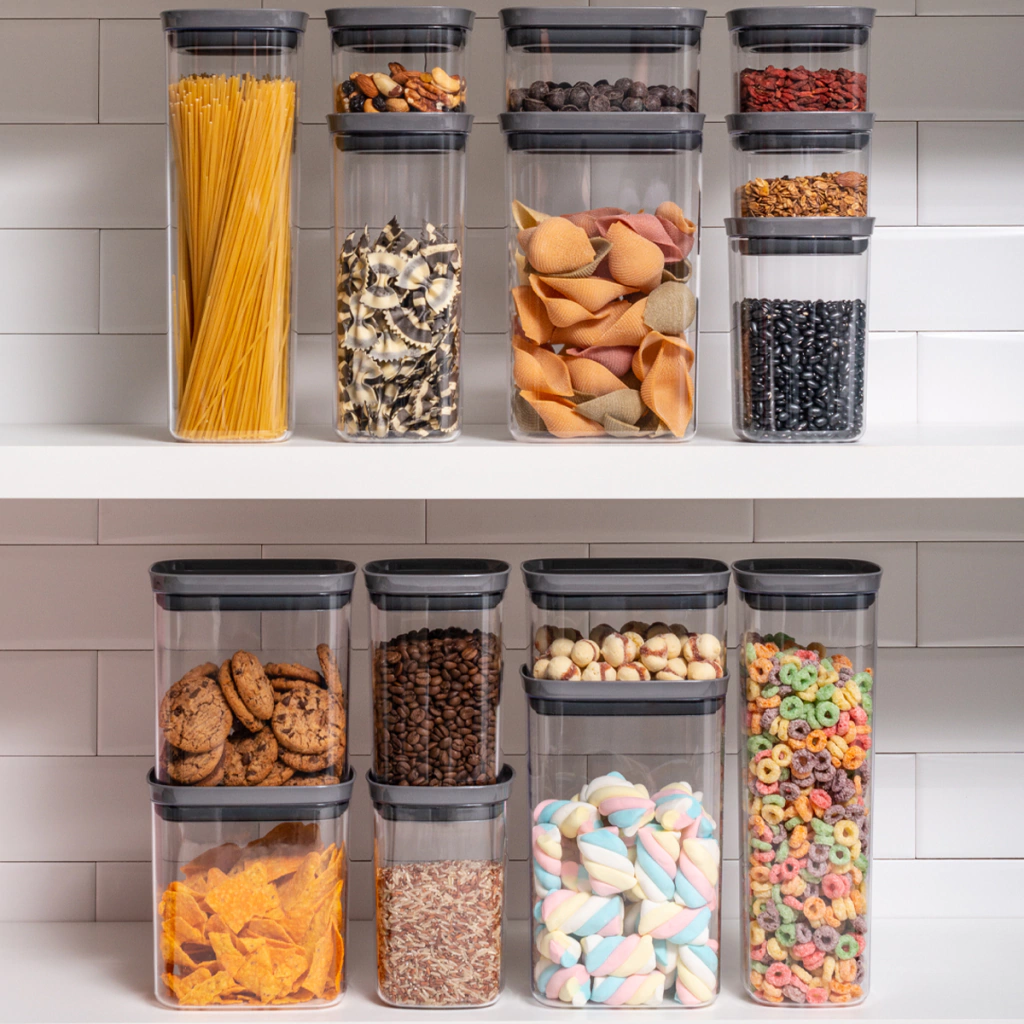 • Organização Inteligente: Os potes são empilháveis e transparentes, facilitando a visualização do conteúdo e economizando espaço nos armários.