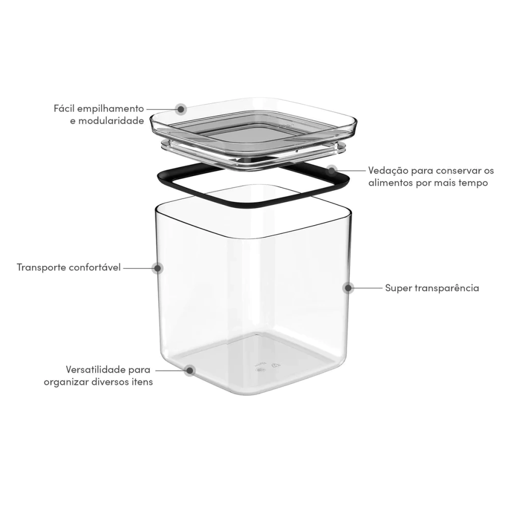 • Vedação Eficiente: As tampas herméticas garantem proteção contra umidade e conservação prolongada dos alimentos.