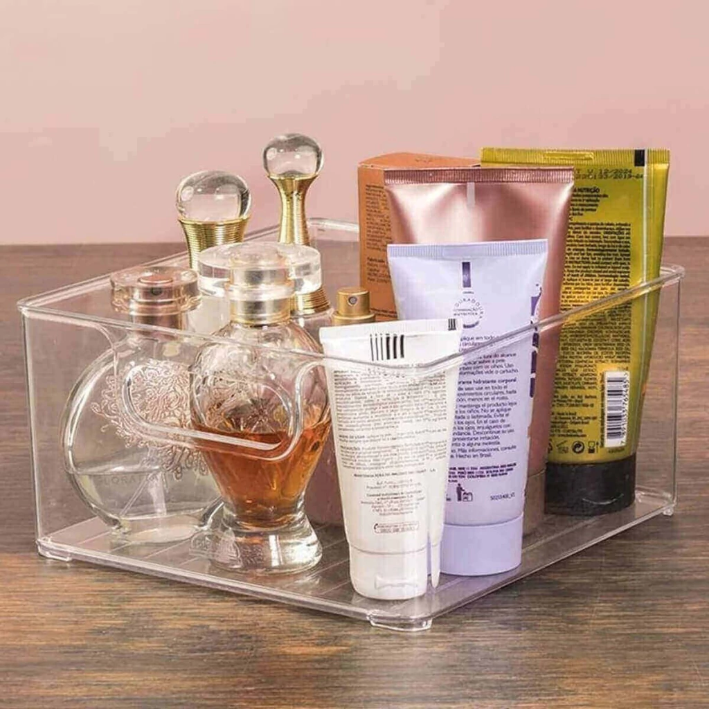 Feito em plástico incolor de alta qualidade, o organizador possui 30cm de profundidade e 3,8 L de volume — espaço ideal para manter tudo no lugar sem complicações. |