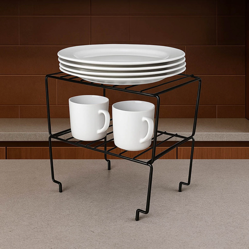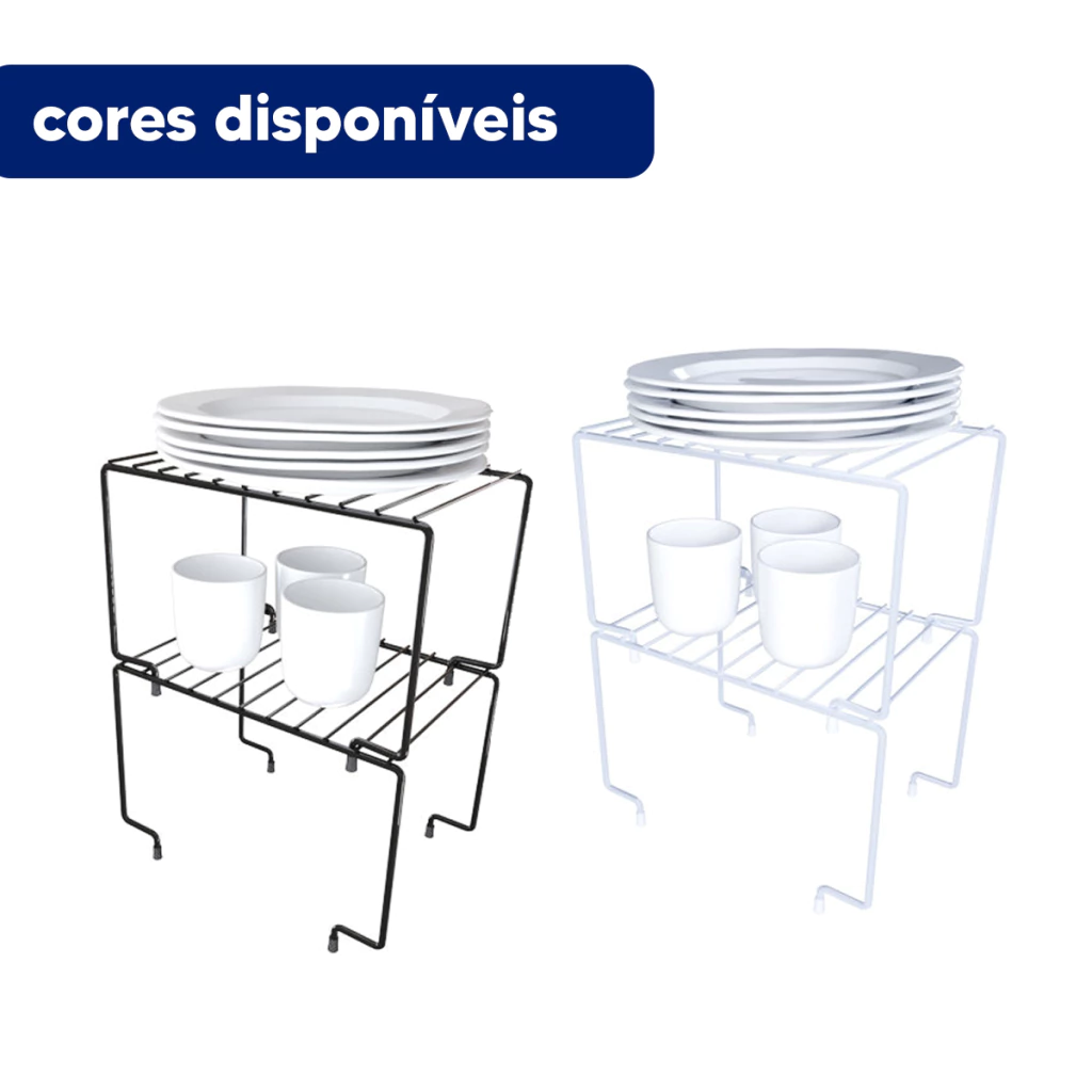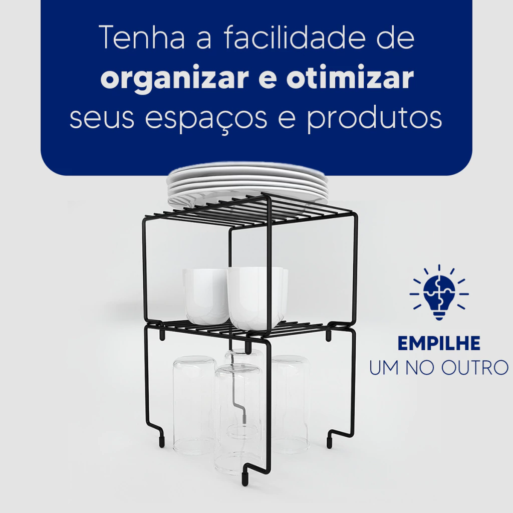 • Aproveitamento inteligente do espaço: Crie níveis extras no armário, otimizando o armazenamento de pratos, copos e muito mais.