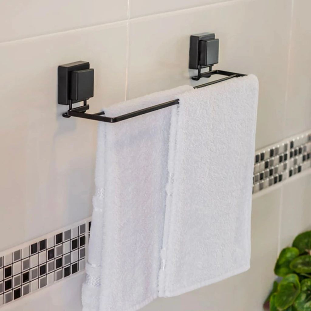 • Instalação Fácil: Ventosas que permitem uma fixação segura sem danificar as superfícies. • Versatilidade: Apropriado para vidros, azulejos e superficies totamente lisas. • Design Sofisticado: O acabamento preto fosco, feito por pintura eletrostática, assegura que a superfície não descasque, mantendo a estética por muito mais tempo. • Durabilidade: Seu material em Aço Carbono garante um uso prolongado mesmo em condições úmidas. • Manutenção Simples: Limpeza e manutenção descomplicadas, suporta o uso diário sem preocupações. |