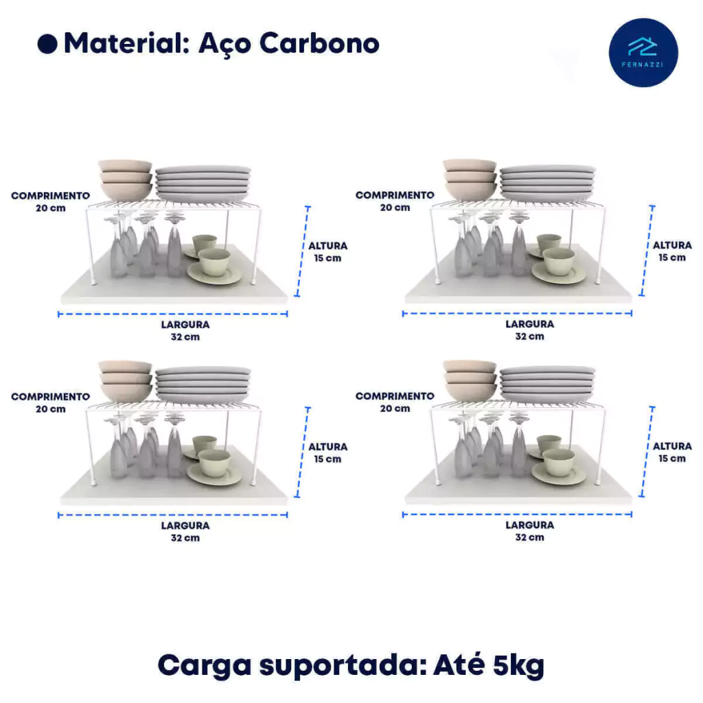 • Versatilidade: Ideal para armazenar pratos, xícaras, potes e outros utensílios de cozinha, o kit permite fácil acesso aos itens que você mais utiliza no dia a dia.