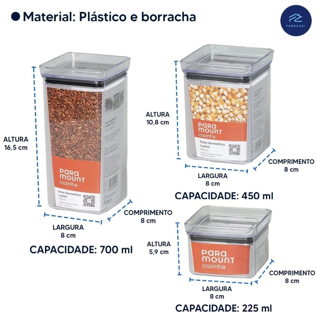 • Vedação Perfeita: Anel de silicone que garante fechamento hermético, preservando o aroma e sabor dos temperos por mais tempo.