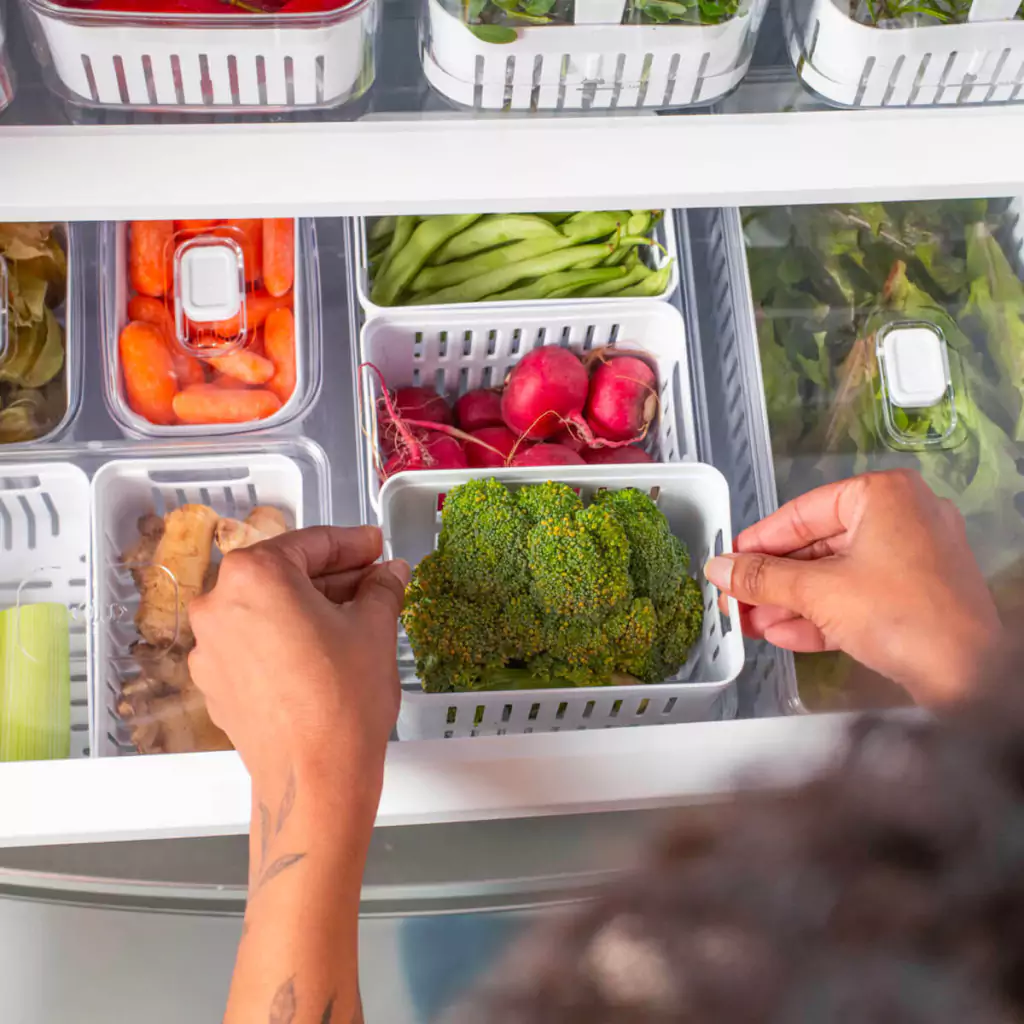 | A transparência dos Organizadores Clear Fresh facilita a visualização e organização dos alimentos, reduzindo o desperdício de alimentos esquecidos. |