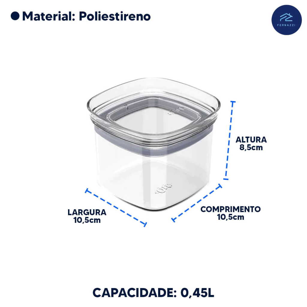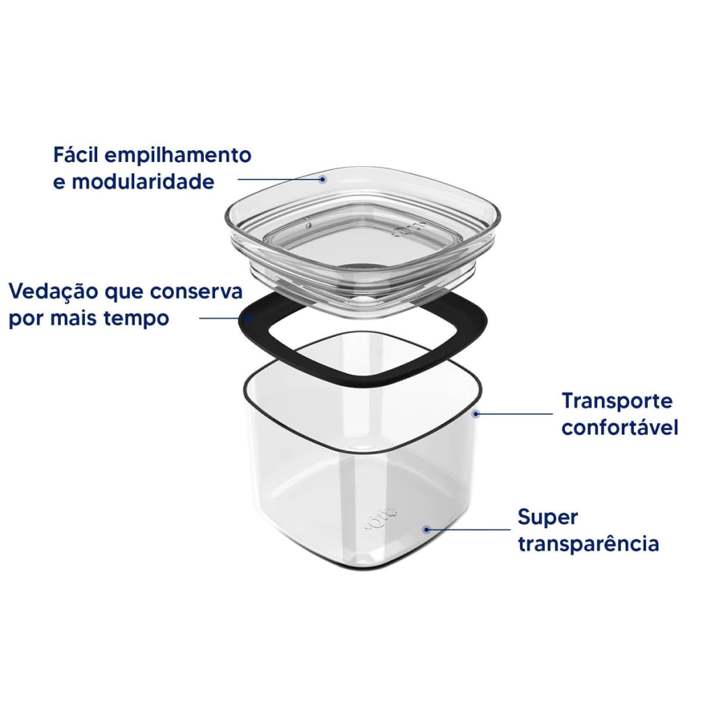 Prolonga o Frescor: Vedação hermética que mantém alimentos frescos por mais tempo. Design Inteligente: Formato que permite um empilhamento eficiente e seguro. Organização Prática: Transparência total que facilita a identificação rápida dos conteúdos. Uso Versátil: Apropriado para varios produtos, desde alimentos até itens de uso diário. Manutenção Simples: Design que evita acúmulo de resíduos, contribuindo para uma cozinha mais higiênica. |