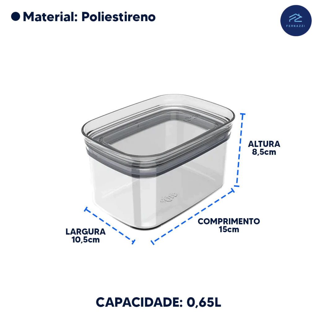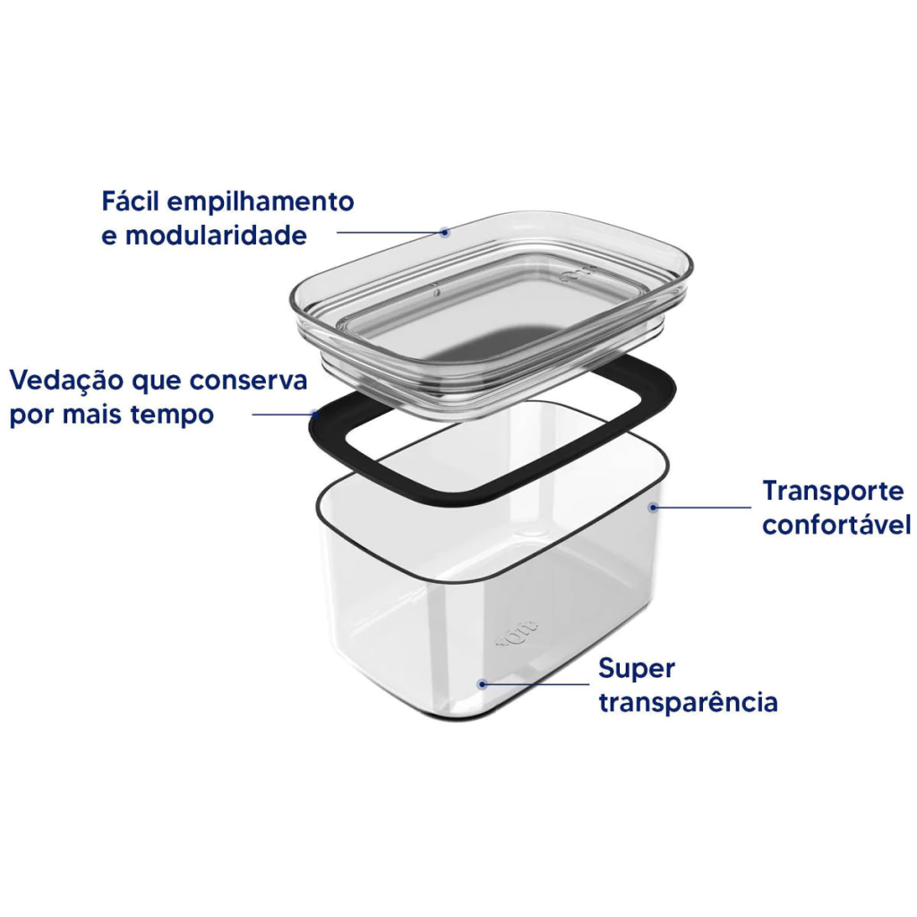 Prolonga o Frescor: Vedação hermética que mantém alimentos frescos por mais tempo. Design Inteligente: Formato que permite um empilhamento eficiente e seguro. Organização Prática: Transparência total que facilita a identificação rápida dos conteúdos. Uso Versátil: Apropriado para varios produtos, desde alimentos até itens de uso diário. Manutenção Simples: Design que evita acúmulo de resíduos, contribuindo para uma cozinha mais higiênica. |